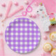 Bright purple gingham paper plate