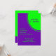 Bright purple and bright lime green colourful modern circle wedding design invitation, postage stamps, save the date magnets, stickers - all in a matching set. On the dark purple background it is best to use a very light or bright colour.