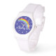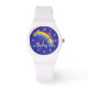 Colourful rainbow graphic art kids girls watch with dark blue background. Customise with your name currently reads Bailey.