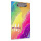 Bright Rainbow & Gold Faux Glitter Agate Monogram Clipboard