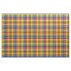 Fabric with a bright chequered plaid in colours of the rainbow. A Plaidwerx original pattern. Pattern repeats every 2+3/8". Special order larger scale via https://plaidwerx.com/contact.htm