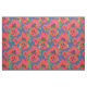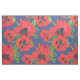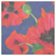 Bright Red and Black Oriental Poppies on Blue Fabric