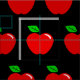 A fun and fruity pattern of shiny red apples with a leaf.