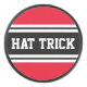 This fun hockey design features classic strong bold big letters inside a highlighted wide black stripe with double white stripes against a bright red background with "HAT TRICK" spelled out front and centre. Make It Your Own: The colours and text in this design can be personalised.
