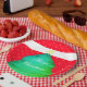 Decorative bright red paper plates with a Merry Christmas theme, the tree, stars, or stripe along with text are removable. The red background can be changed to any colour, and the text can be personalised to your very own message.