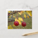 Two bright red shiny crab apples and golden leaves in the autumn harvest Thanksgiving season. Perfect gift for the cook, gardener or nature lover. You may also add your own text to customise.