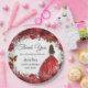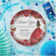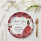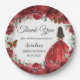 Bright Red Floral Peony Butterflies Gold Princess Paper Plate