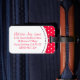 Bright red luggage tag great brightly coloured named id tag to help you find your case. Personalise with your name and full address on the reverse. Pretty design with a simple flower red and white polka dot pattern uniquely designed by designer Sarah Trett.