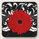Add a lovely feminine touch with this cute bright red gerbera daisy flower, against a black and white damask swirl background. Cute and chic fashionable accessory with a vibrant crimson red floral motif and swirling white vines and scrolls on a field of black. Nice for women, girly girls or a nature loving girlfriend.