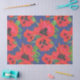 Bright Red Oriental Poppies Pattern on Blue Tissue Paper