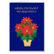 A bright, festive Christmas card with the greeting in Polish (Wesolych+Swiat) and a gold-effect pot of Bright Red Poinsettias on a Deep Blue background with gold-effect lettering. The design is from a hand-painted paper collage by Judy Adamson and you can add your own inside message if you wish.