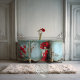 Bright Red Poppies Turquoise Teal, Decoupage Tissue Paper.