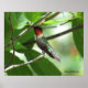 A photograph of a male ruby-throated hummingbird guarding his territory.
