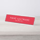 Customise this Modern Stylish Clean Minimalist Sleek and Simple Bright Red Desk Nameplate with white fonts.