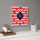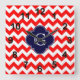Bright Red White Chevron Navy Quatrefoil Monogram Square Wall Clock