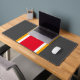 Bright Red White Yellow Racing Stripes On Black Desk Mat