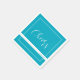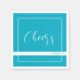 Stylish vivid sky blue napkins with a small white frame, “Cheers” in handwritten-style script, and “enjoy” in deep teal on a white banner.