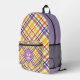 Personalise this colourful plaid backpack with a name and monogram for a stylish back to school gift. Colourful diagonal plaid with lavender purple contrasts. Select from more sizes and styles in the drop down menu.