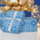 Bright sky blue white star flower geometric design wrapping paper