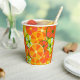 This party cup is adorned with a colourful print featuring circles of overlapping sliced citrus fruit in bright orange, yellow, green, and pink hues.