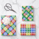 Red Green Yellow and Blue. Set of Three Coordinating Primary Colours Snowflake Wrapping Papers.