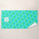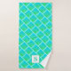 This lovely blue and green towel set will give a bright pop of colour to your bathroom. The design features an abstract pattern of blue green squares with black dots. You can monogram it with your desired initial.