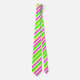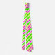 This tie has bright stripes of varying widths--lime green, magenta, yellow, and white--arranged in a diagonal pattern.