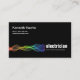 Design features an all black cover accentuated by a colourful luminous electrical pulse running across the card's face. At the end of this pulse are the job title and a slogan directly underneath. Near the top is your prestigious name alongside the contact details.