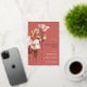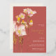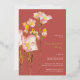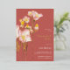 Engagement Party Invitation with pink Buttercups Flowers. Hand drawn flowers on a bright orange and red colourful background. Bright Ornate floral watercolor painting. Abstract nature backdrop with Buttercups Flowers. Vintage elegant flowers, autumn or summer floral design, romantic field. Botanical plot. Botany Engagement Party Invitation. Bright Summer Buttercups Collection.