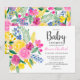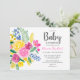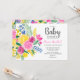 Bright summer pink floral watercolor baby shower invitation