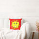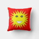 This awesome pillow .features a bright smiling yellow sun that is guaranteed to make you smile even on the most miserable days. It is on a red-hot background and has a big white smiley mouth and huge black eyes with white pupils.