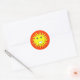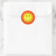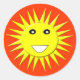This set of round stickers features this bright smiling yellow sun that is guaranteed to make you smile even on the most miserable days. It is on a red hot background and has a big white smiley mouth and huge black eyes with white pupils.