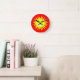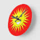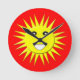 This awesome clock features a bright smiling yellow sun that is guaranteed to make you smile even on the most miserable days. It is on a red-hot background and has a big white smiley mouth and huge black eyes with white pupils.