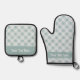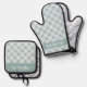 Bright Teal and Winter White Snowflake Pattern Oven Mitt & Pot Holder Set