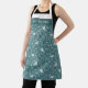 Bright Teal Green Winter White Bird Floral Pattern Apron