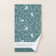 Bright Teal Green Winter White Bird Floral Pattern Bath Towel Set