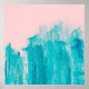 Bright Teal Painted Brushstrokes on Pastel Pink Poster