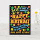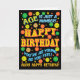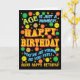 A very bright and colourful Birthday Card for any age, with a vintage feel and positive messages, such as 'Age is just a number!' and 'You're as Young as You Feel!', all on a black background, dotted with numbers and stars. A digital design by Judy Adamson.