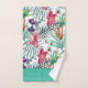Bright Tropical Floral Pattern with Aqua Border Bath Towel Set