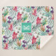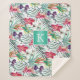 Bright Tropical Floral Pattern with Monogram Sherpa Blanket