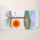 Beach towel with my original and simple but colourful vector design of a palm tree, bright orange sun and waves, with customisable initials.