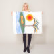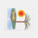 Fleece blanket with my vector design of a palm tree on an island, bright orange sun and blue waves.