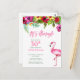 Set the tone for a fun, summery 30th birthday celebration with this cute tropical "Let's Flamingle" party invitation postcard! Featuring a bright, tropical watercolor floral drop of colourful hibiscus, bottle brush, bright bird of paradise, and palm foliage, followed by "Let's Flamingle" in flamingo pink. Personalised on the front in text of matching pink and green. Copyright Elegant Invites, all rights reserved