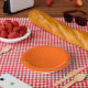 Paper Bowl Set printed with Bright True Orange Solid Colour is part of our always expanding plain and simple trendy solid colour collections by TheFabricSeal print on demand shop at Zazzle.com #ZazzleMade ©️Original. https://www.zazzle.com/store/thefabricseal