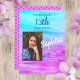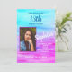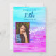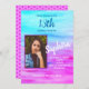 Colourful birthday party invitation with turquoise, aqua, pink background is a festive design for a girl's 12th or 13th birthday. Simple words-only look with festive abstract brush strokes is an easy way to announce your celebration.