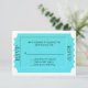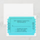 All purpose event RSVP response card, done in a bright turquoise coloured ticket look design, against a white background. Text in black is ready to personalise for your event. Great for weddings, birthdays, anniversaries, and other special occasion events.