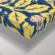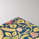 This design features a fabric pattern created by British artist William Morris (1834–1896), who was a founder of the Arts and Crafts movement. It shows green foliage on a blue background with red and pink touches of colour. There are visible sunflower, violet and columbine flowers. The original pattern was first designed in 1883.