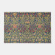 This design features a fabric pattern created by British artist William Morris (1834–1896), who was a founder of the Arts and Crafts movement. It shows green foliage on a blue background with red and pink touches of colour. There are visible sunflower, violet and columbine flowers. The original pattern was first designed in 1883.