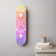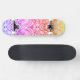 This vibrant skateboard features a stunning ombre effect in bright, warm colours of the rainbow, blending seamlessly from purples, to pinks, to yellows on a vintage lace background. Perfectly capturing a boho, hippie, and girly vibe, this eye-catching design is both bold and delicate, making it an ideal choice for those who love a unique and colourful ride.