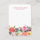 This cheerful jewellery display card features a vibrant watercolor floral arrangement in shades of pink, yellow, and green blooming across the bottom. The white background and bold botanical design create a fresh and lively look, ideal for showcasing handmade earrings, necklaces, or bracelets. The front allows space for your brand name and tagline, while the back is fully customisable with your website and contact info. A perfect choice for jewellery designers who want playful, feminine packaging with a boutique flair.